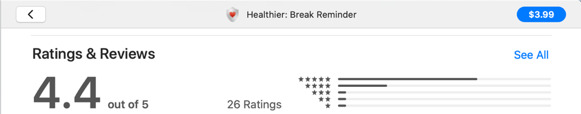 App Rating: 4.4 (26 ratings) & #7 in Health & Fitness Apps